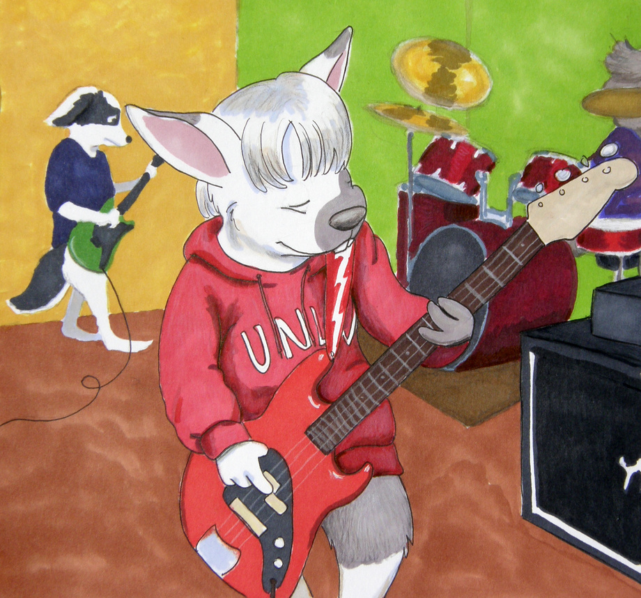 That's Brad in the foreground. And, yes his bass is nearly as tall as he is.~