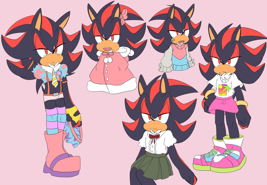 Actually nah these outfits are really cute (suggested to me by a couple of friends) and damn I wish I had the money for them.. I have a headcanon that this lil brat likes to dress up due to hanging around Rouge so much =u= The left one is from Panty & Stocking btw;;