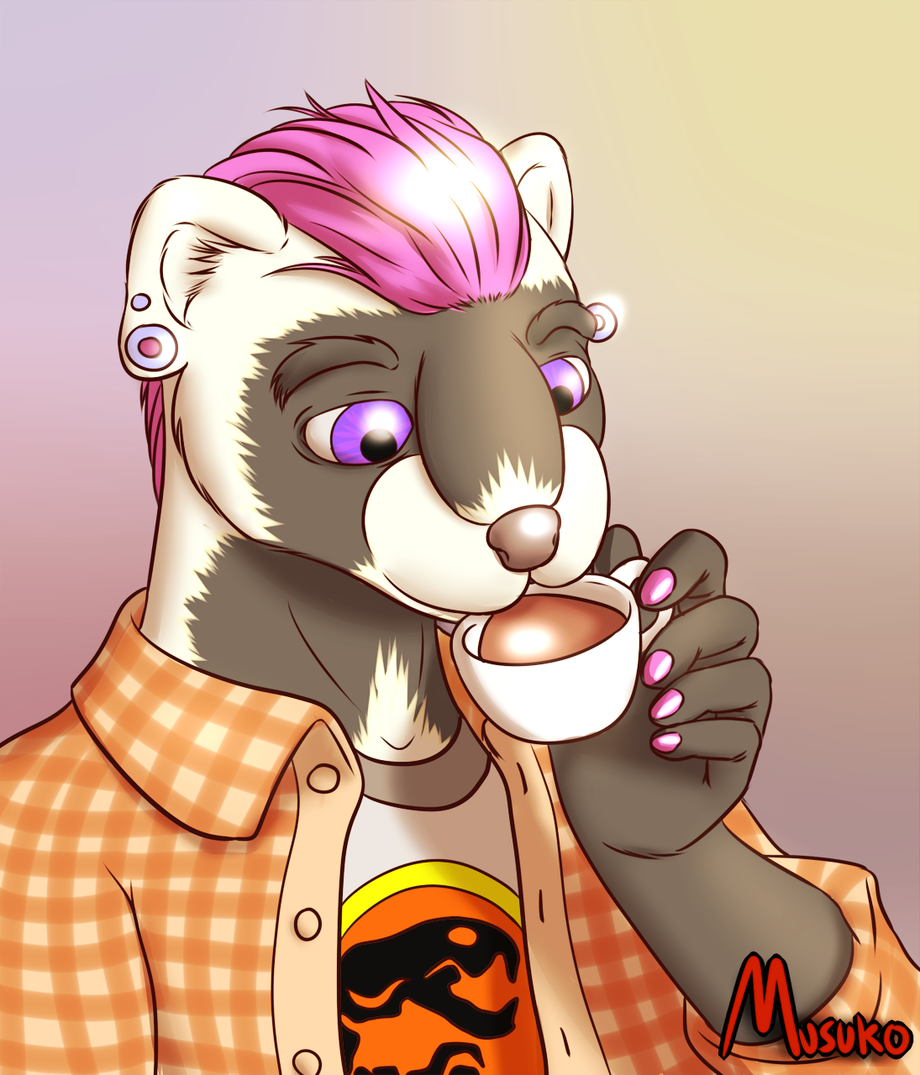 Art practice with the following keywords: ferret, hipster, coffee shop.