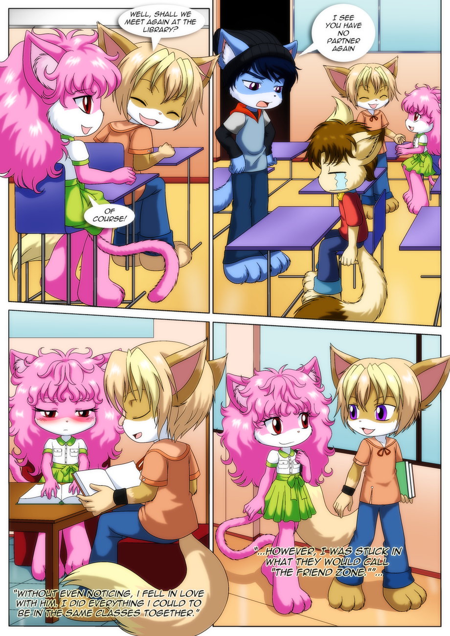 panel 3 "quickly she became part of the group, and had a good relationship/friendship with everyone" "well.. everyone except her own brother, for an unknown reason they didn't talk eacho other, at least at the school"