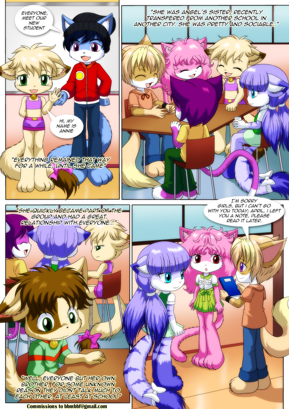 panel 1 " everyone, meet our new student." "hi, my name is Annnie" April: Everything remained that way for a while, untill she came"