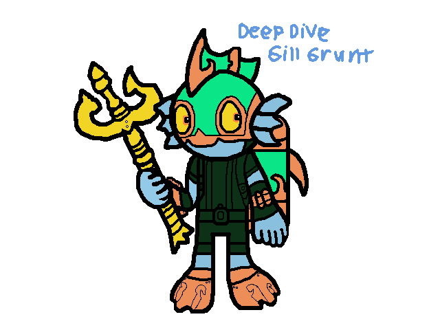 This is Gill Grunt as a SuperCharger Skylander from an upcoming Skylanders: SuperChargers video game! His signature vehicle is the Reef Ripper.