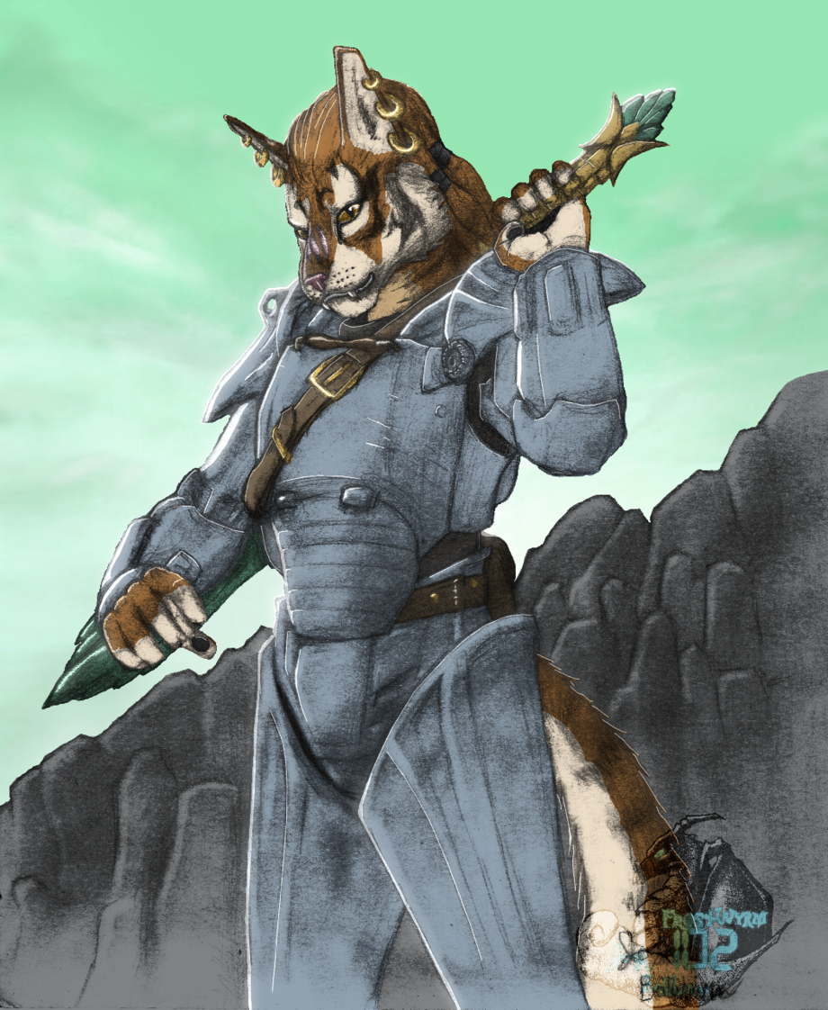 FA upload date: February 4th, 2012 04:28 AM Description: Crossovers FTW! You read it right, a khajiit(The Elder Scrolls) wearing T-45D Power Armor(Fallout series), while wielding a Glass Greatsword(Skyrim version). Original http://fav.me/d4jjd4k [DeviantArt] |