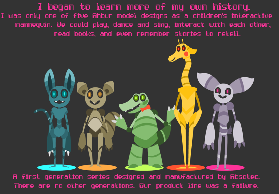 Well, research did show that Eeple was "one of five Ahbur robots" designed to interact with children and keep them happy. There was only one generation, though, because the "entire line was a failure", mostly because the robots developed "glitches". Also note that, like the animatronics in every version of 5N@F, the robots have very animal characteristics.