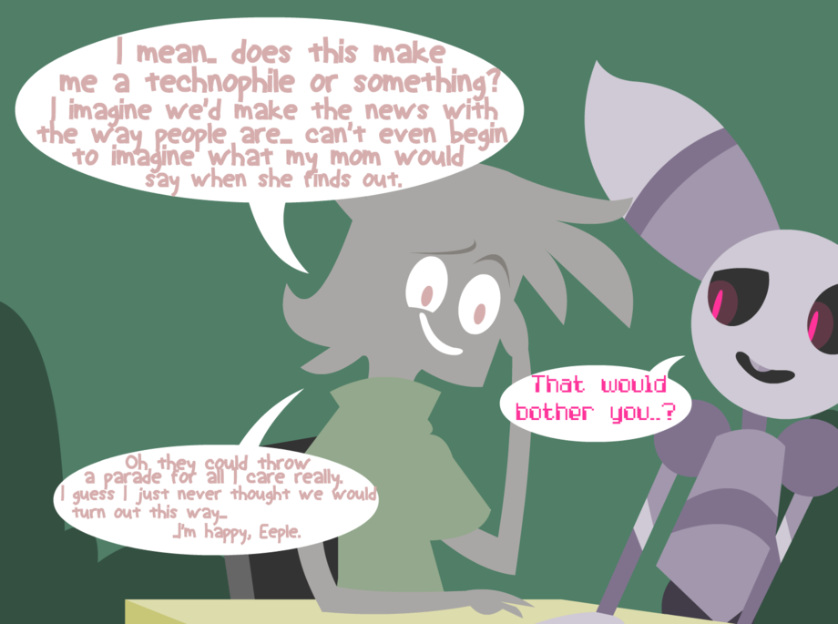 It's actually a little disturbing that poor Eeple is crying(?) on the back cover, but outside, it was a very wonderful little roller-coaster of emotions that this entire story ran, and I think I did, in fact, fall in love with it, after all.  If I still had any more money to send to you, I'd so donate a large portion to you, but, alas, I'm tapped for the time being.