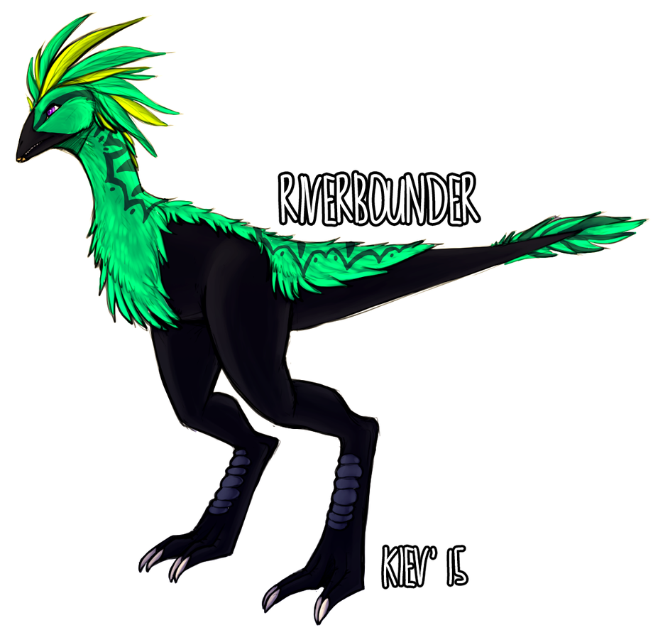 riverbounders, like their seodalis counterparts can be colored anything under the rainbow, and can have all sorts of markings, generally with their feathers being lighter and brighter, and their scales being darker. at a western seo’s birth, theyre given a riverbounder, and the two of them will bond for life, and while the two cannot communicate, generally they become trusted partners and friends. they run at a medium pace, but can jump incredibly high, and are adept at climbing. their crests can either be raised or lowered depending on mood, and theres speculations thyere also used to communicate. riverbounders are insectivores primarily, but are sometimes given berries and fruits, or small chunks of meat as treats from their carers.