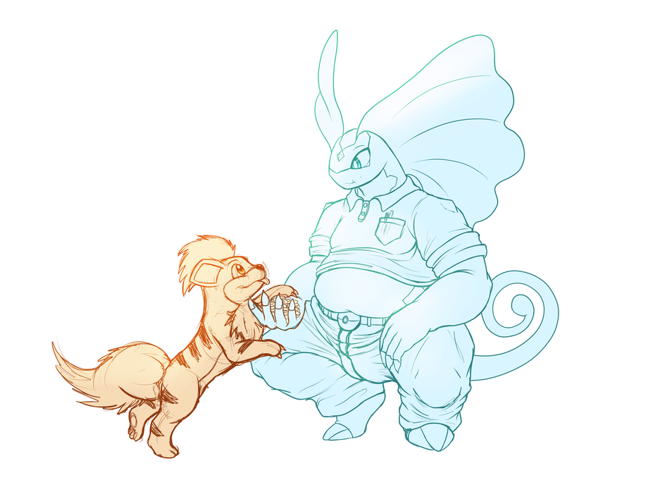 Here, we see him getting a shy growlithe to warm up to him and take some food from his hand after he took a bite of it himself. It wasn't long before he got the little pokemon in a playful and more relaxed mood.