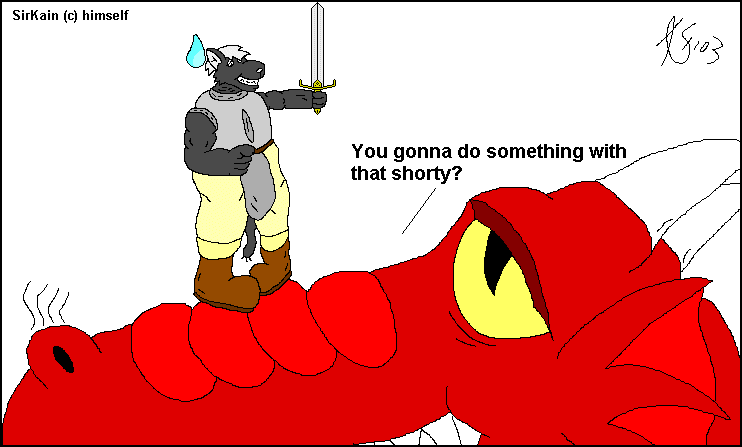 Another I forgot I wanted to have here when Fa was first up.. digging back to the InflatioNatiopn days for this one! I think ol' Kain went for too big of a red dragon to (try to) slay...