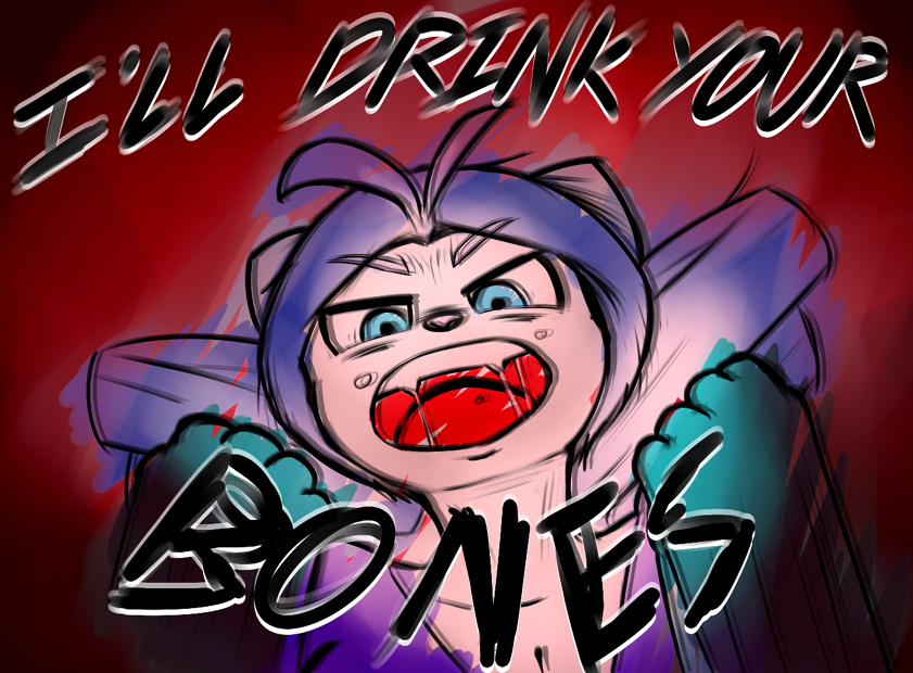 Oh snap! I get this reference! Simpsons, season 17, ep13 at 6:33 time stamp: Mr. Burns enters a school bus to get a picture of a smiling child and Nelson yells "HE'S GONNA DRINK OUR BONES!".