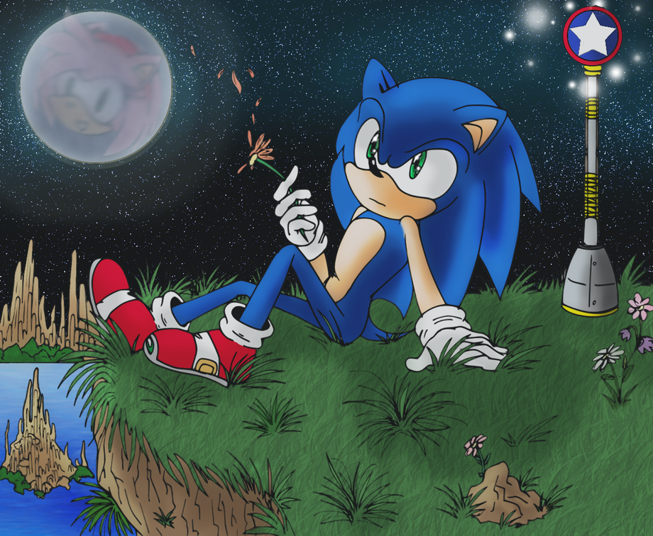 So, here you go ! A cute drawing of our dear Sonic, who is thinking to his girlfriend ^^ ! So cuuuuuute, hm ? :3