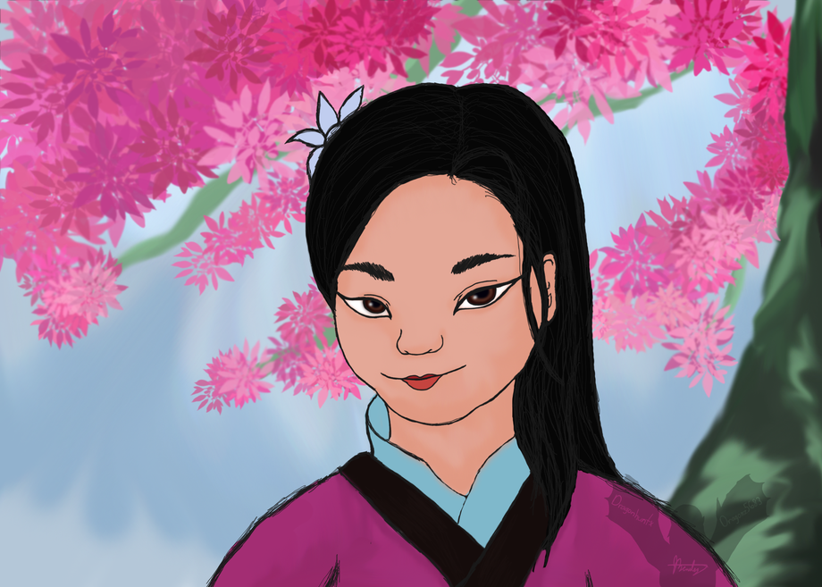My friend wanted herself to be drawn as Mulan with a few other things, but my inspiration was like "Nah, you already got the sketch for Mulan, so just do that"