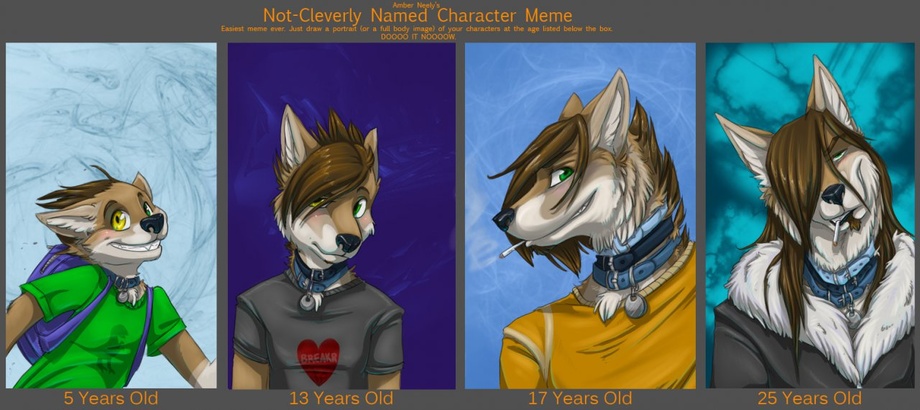 Carefree and happy-go-lucky. Kyma's parents were very lenient and living a high-middle-class life sure reflected kyma's clothes and style. Like most kids he loved dinosaurs and cartoons such as batman and teenage mutant ninja turtles. Kyma was born with different colored eyes like a lot of huskies - and his coyote genes quickly turned his young right eye from blue to yellow. His first collar was given to him on his fifth birthday from his father who was called to duty soon afterwards. He never returned.