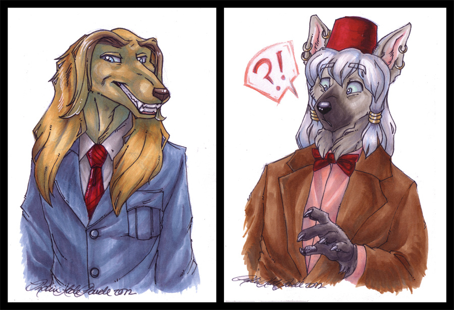 My afghan hound dressed like David Tennant, and Osiris dressed like Matt Smith.