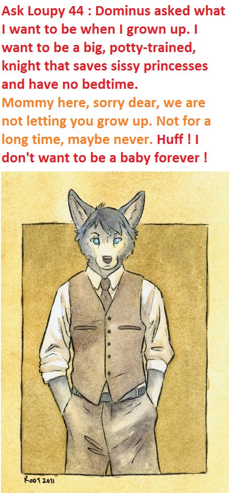 Art by Kannakin. https://en.wikipedia.org/wiki/How_now_brown_cow an explanation about the question. I had never heard of it before, and since I have a terrible french accent, I took the joke of Dominus teasing me about my accent as he keeps making me say this sentence. While I often wears a calf sleeper (like the sheep sleeper you see here) in RP, I was surprised I never get a pic of me drawn in one. So I had to settle for this cute sheep sleeper. And next time I'll punish Dominus and Alice with recorded repeatead sentences of how now, brown cow (why Alice ? Just because she is a brown cow). Fear the little pup, cows, he is coming to bondage and punish you because of this sentence !