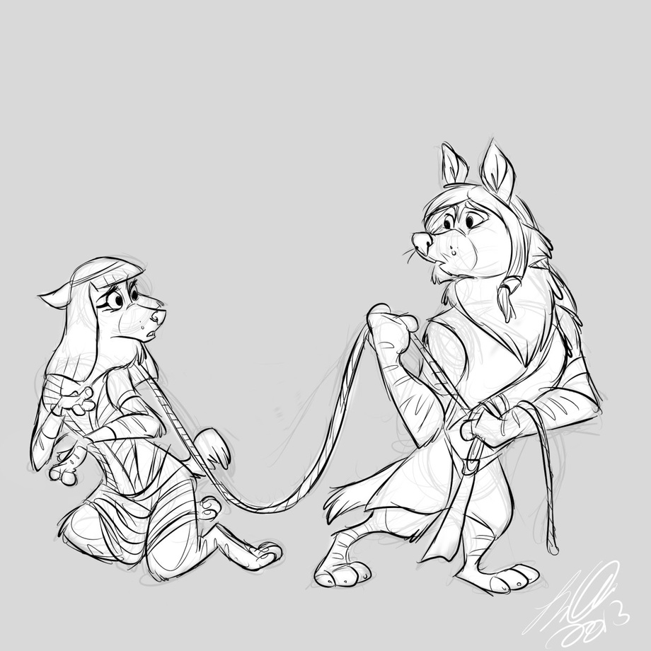 Adara is given to Khenti as a gift from the queen. Khenti has had a crush on Adara for a long time, and Adara is unsure about him or his intentions. It doesn't help that she has always been around her mother since she was a pup.