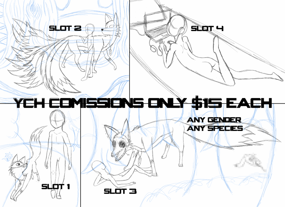 Well here we go again. 3 of them are from my last attempt to sell some YCH stuff that failed. This time I also have an extra image for sale too, so four in total.