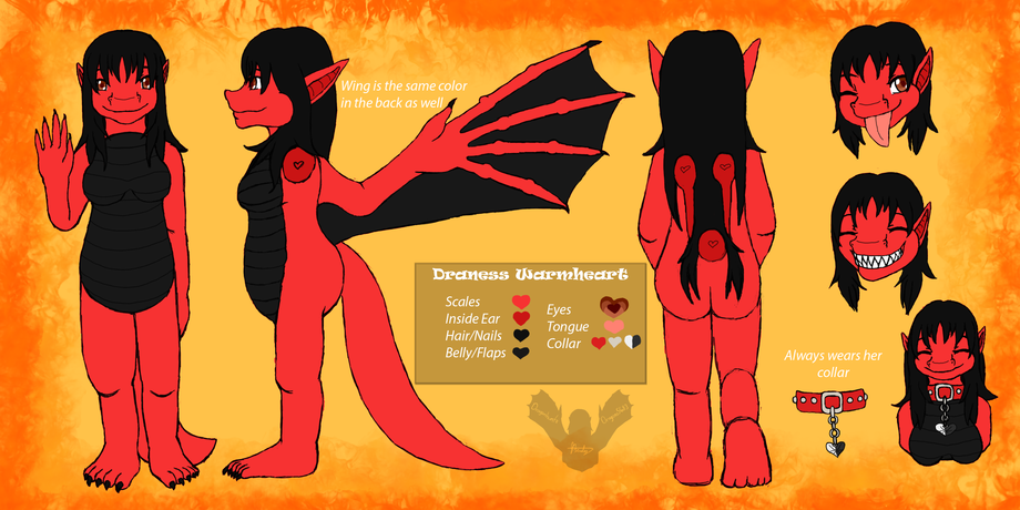 Always wears her red collar with her black and white heart chained to it.