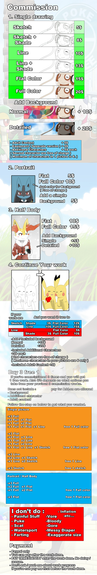 Sketch work - > Shade 3$ / Line 10$ / Flat Color 12$ / Full Color 15$