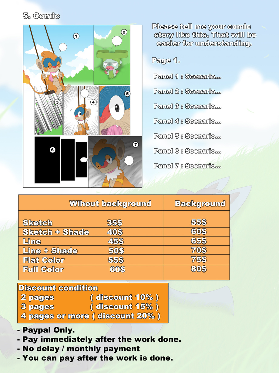 Line work -> Shade 3$ / Flat 5$ / Full Color 10$
