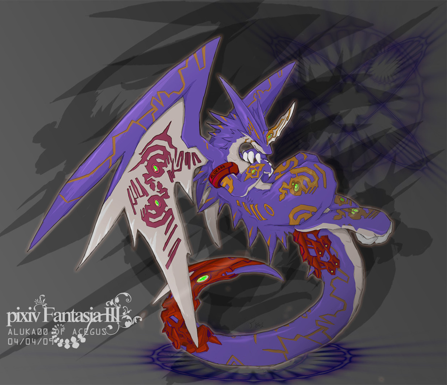 The first successful prototype bioengineered dragon, specialize in magic and time distortion, created under the Project "ALUKA" as a research to time traveling, generally quiet, handsome/cute fellow and a stalker who somehow always get himself involve in all type of weird situation no matter what he do.