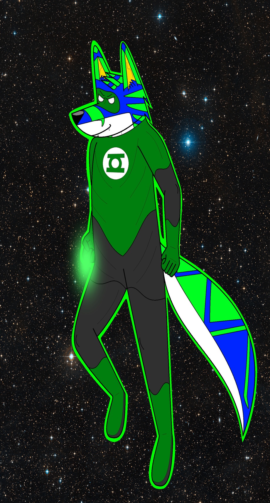 hey guys so i made this yesterday and finished it today okay so i was thinking for a long time how would wolfie look like as a green lantern so i started drawing yesterday and this is the result awesome :D okay so normally this draw had to wait in line for the others butt drawing is going so great and i have so many in stock why not make one and finish it real quick so any way go check out the oath version too :)