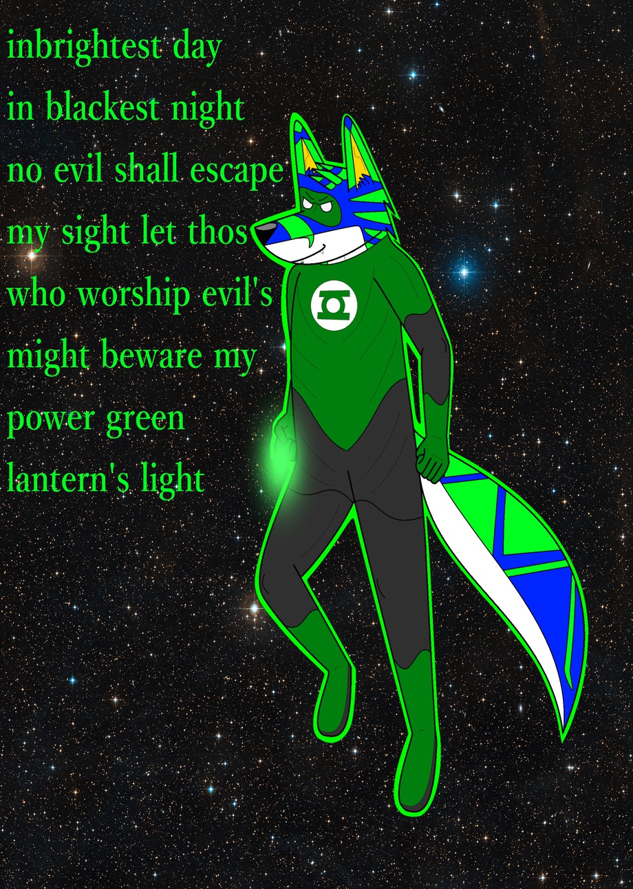 hey guys so in this version you see the oath......in brightest day in blackest night no evil shall escape my sight let thos who worship evil's might beware my power green lantern's light! ',:)
