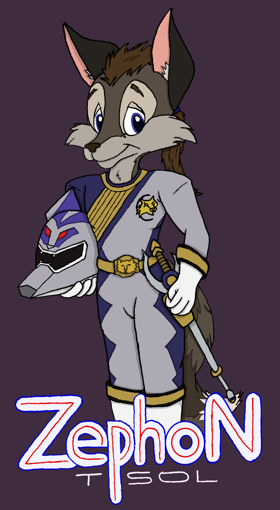 Portrait of my beloved amigo Zephon T'sol dressed up as the Lunar Wolf Ranger from Power Rangers Wild Force. This is gonna be his Anthrocon badge. I think he looks quite dashing, don't you? :)