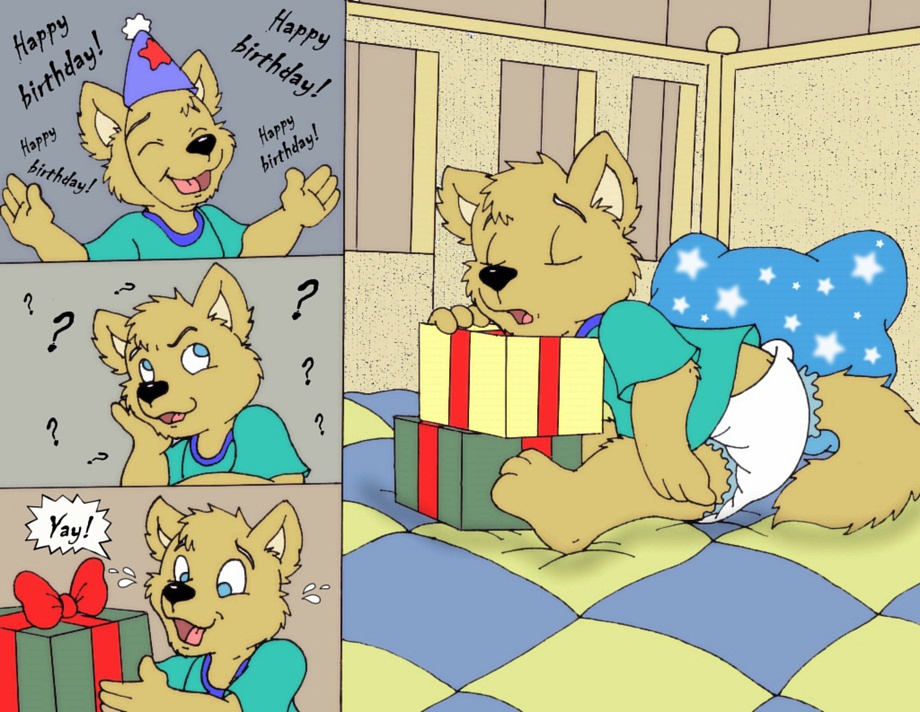 HAPPY BIRTDAY,KIBA!" all shouted at once! Little Kiba was very excited and apart of that, it was a very great day too!After the birthday party, and when all his friends are gone to their homes, Kiba looked at his many gifts that his friends had brought him!