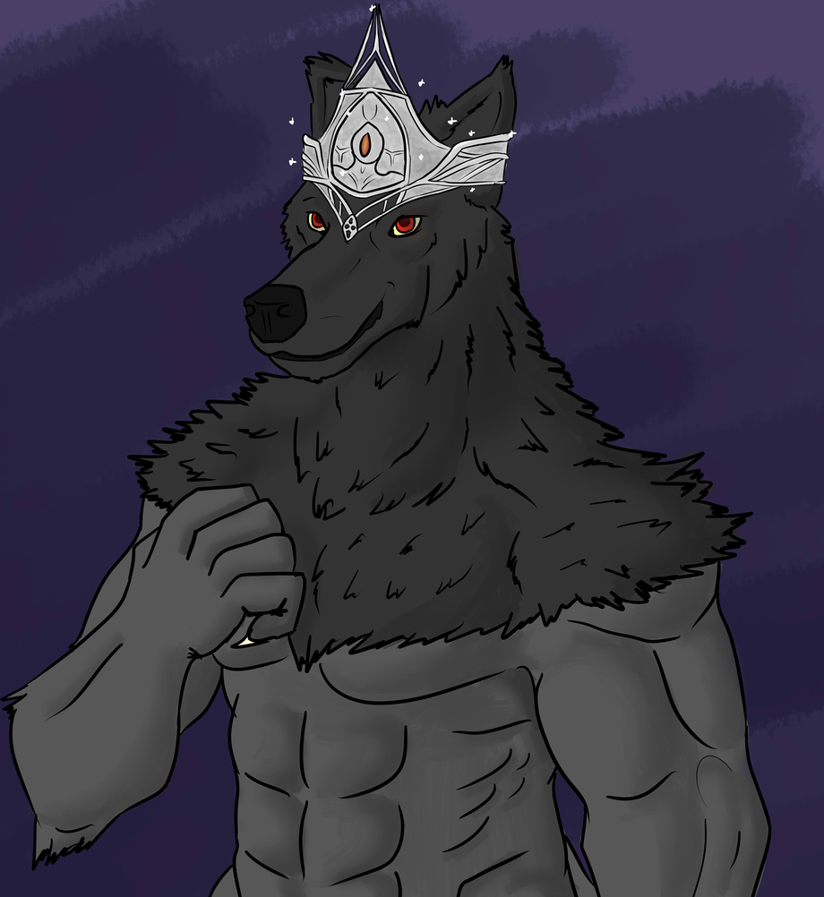 Ori has been playing Dark Souls 2: Scholar of the First Sin, and made a comment about how the Crown of the Ivory King looks like a fancy tiara. So naturally I drew Sisus, the most masculine part of Ori, into the fanciest werewolf.