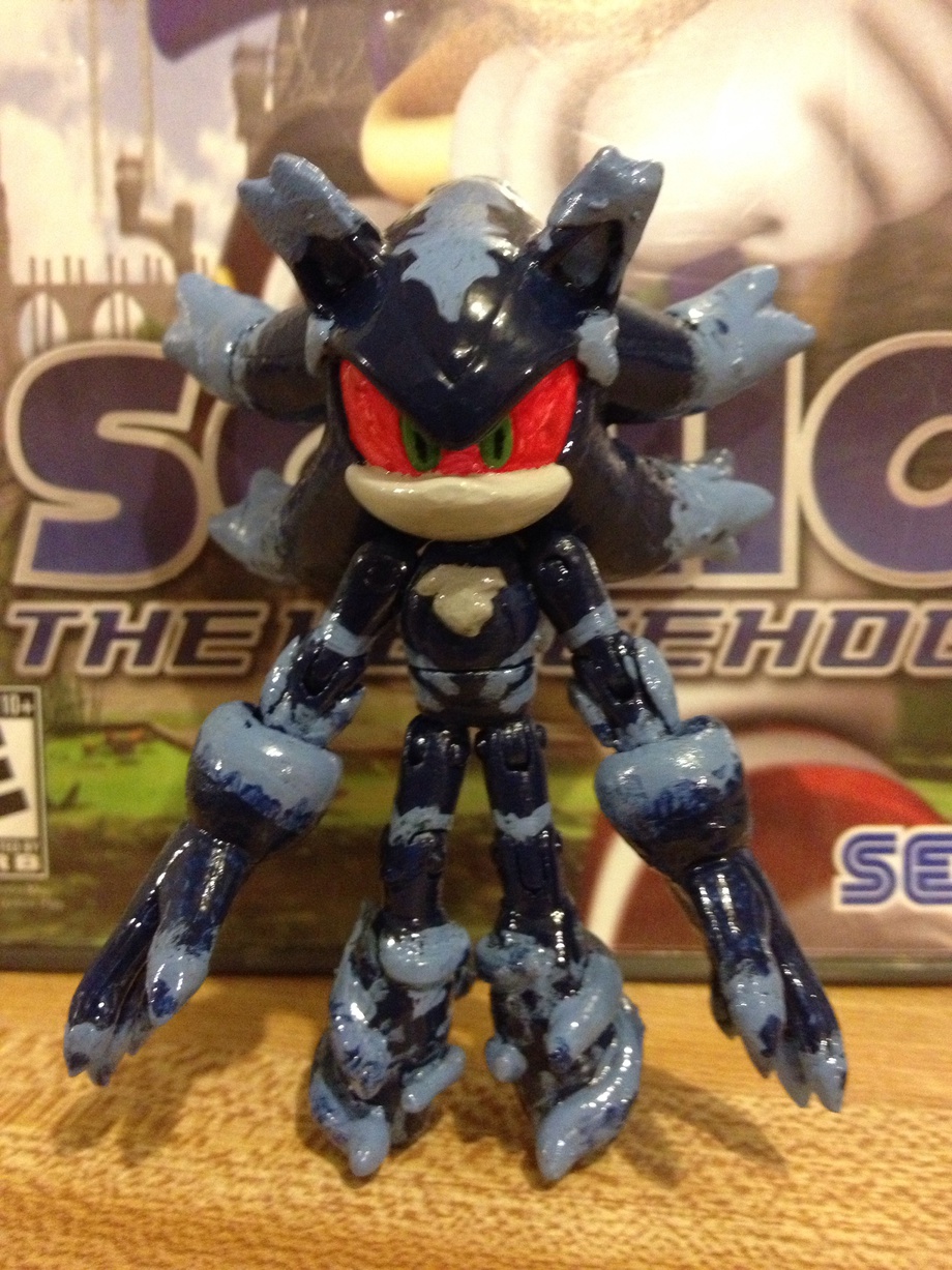 i now give you the very first ever made King Shadow figure! like all my customs i used super sculpy to make his crown and shoulder peace, and his cape is made of red t-shirt scrap.