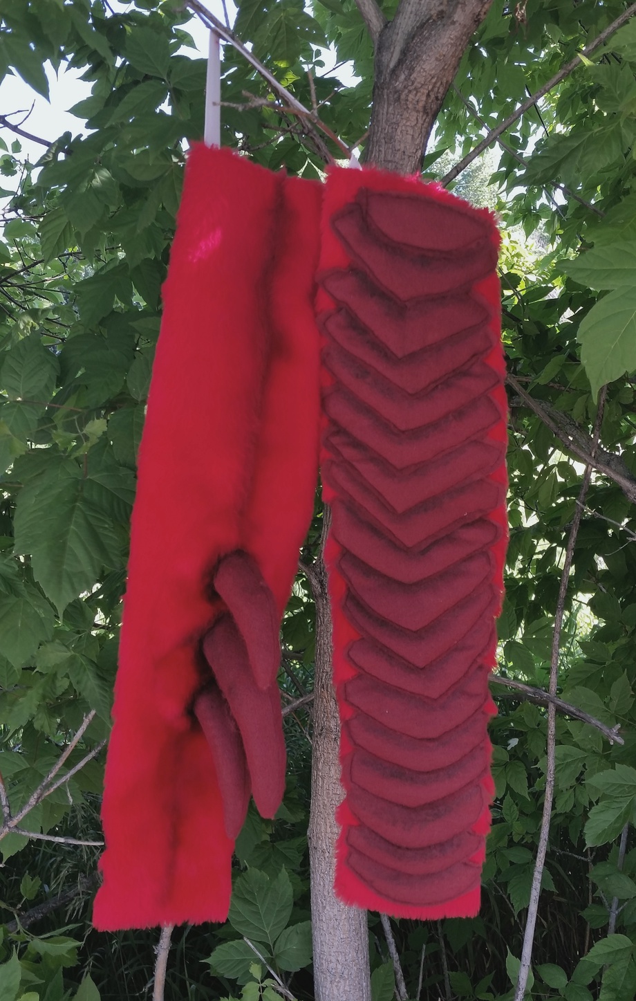 Some draglety sleeves for Kat who is a v red Knucker, also known as a welsh river dragon.