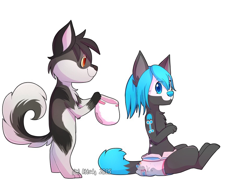 Malia Got a wet diaper after the waterfight she had with koda, but he found a new dry diaper for her^^