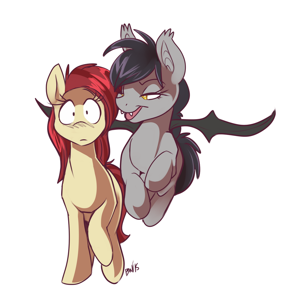 Poor Rhythm, all she wanted was a nice moonlit walk when this cheeky batpony swoops down on her with some rather lewd ideas.