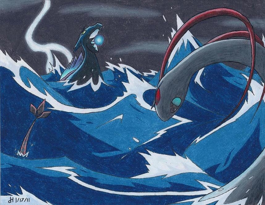 I had to look at the stormy seas from Pokemon the First Movie to do the water (first serious attempt at water btw), hope it turned out as good as I think.