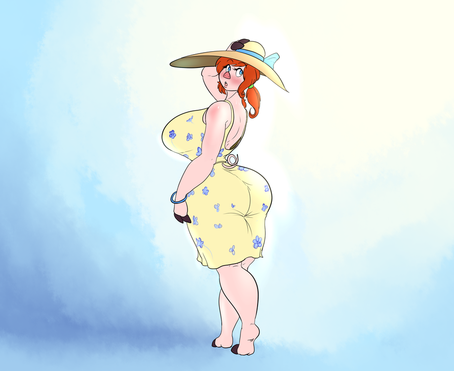 Loving the pose and expression, and the subtle outlines of her figure beneath the dress. To say nothing of the colors and skin blush.