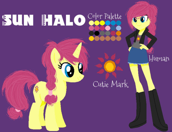 Another pony i adopted from Kikai-Kumo Art made by Kikai-Kumo Name: Sun Halo Nickname: Sunny Age: 16 Gender: Female Sexual Orientation: Straight Pony Type: Unicorn Cutie Mark: a sun Parents: Unknown Sibling(s): None Children: None Special Somepony: None Occupation: None