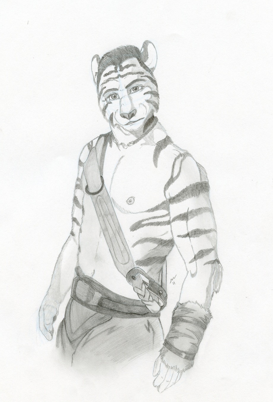 Sketched in non-photo blue pencil on plain printer paper and finished with .03 mechanical pencil.