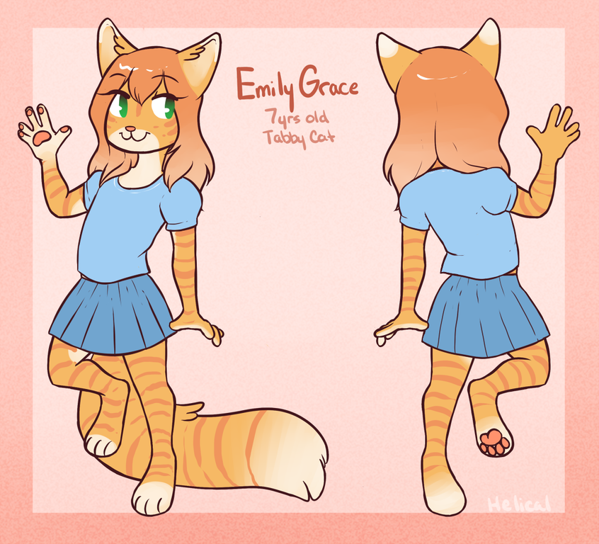 Emily is a peach tabby kitten who is usually portrayed as a preteen arund the age of 7yo. She does not have any magic powers or abilities, she's just a down to earth little kitten trying to make her way through every day as best she can.