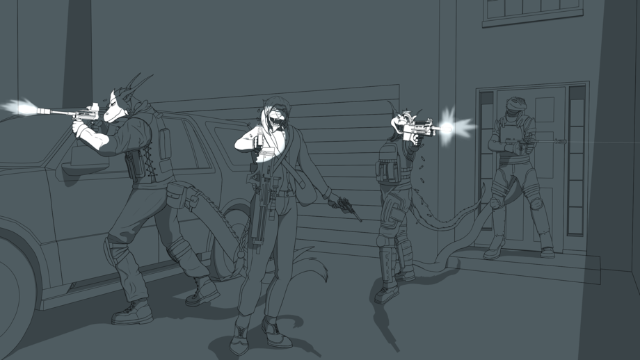 “So you think we can trust them?” spoke Arthemis, as they drove down the dark empty street in their small car. It was a clunker but you’d be surprised how often cops were looking for a high-speed low-drag vehicle during getaways. The snake looked at the panther driving the car. Arthemis always asked to many questions. The panther on the driver side didn’t mind it, but right now, he felt something deep inside his gut. Maybe he couldn’t trust them. PMCs weren’t necessarily the most trustful bunch to conduct business with and heading to a dark side of town, alone, to pick up a very important drop, wasn’t necessarily the safest way to spend a weekend. “Hey, Zhet, are you day dreaming again?” said the snake while shaking his friend on the shoulder. “Yeah I’m fine. Just keep those eyes peeled okay? Something feels… off” answered the panther as the car sped down the lonely roads. Arthemis nodded and returned to resting his feet on the dash while looking out the window. The panther looked at his GPS guidance system and checked the destination. Shady Falls. Such a fitting name for the occasion.