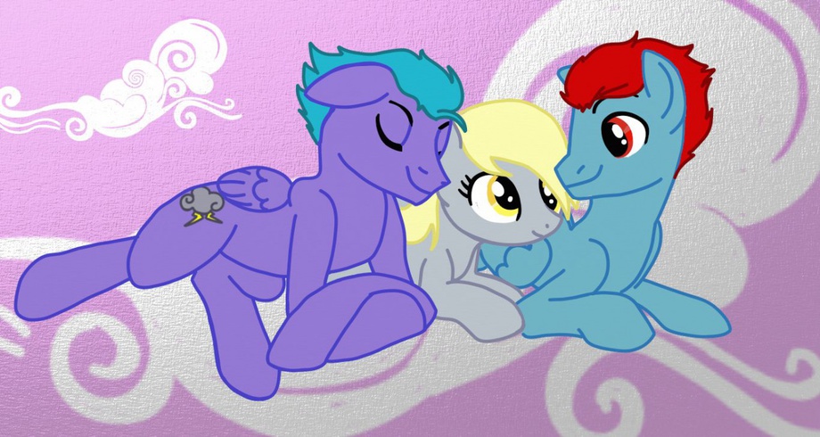 Thunder Cloud and Storm Wind having a cuddle with every ponies favorite mailmare Derpy!