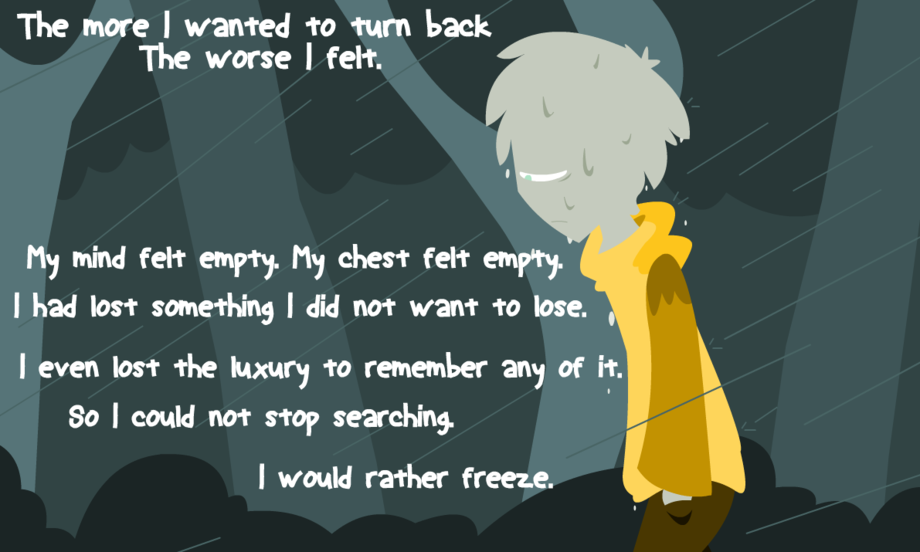 Either way, lovely story, and fantastic work on the wording and visuals. You should be proud. n_n