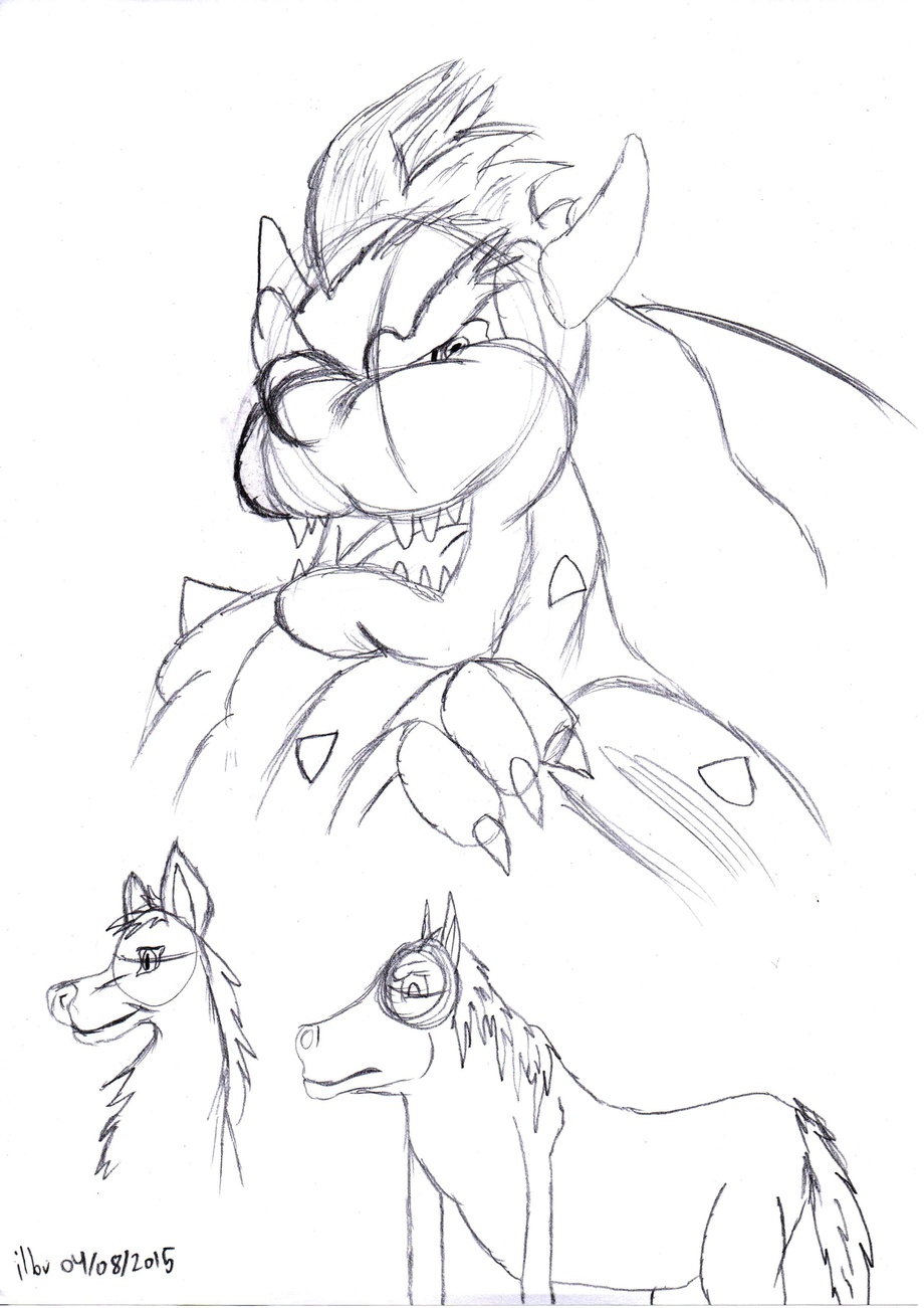Jett guided me along in how to properly draw Bowser, and I still somehow struggle with it. Then I added a canine and a horse because I didn’t want to waste the paper space.