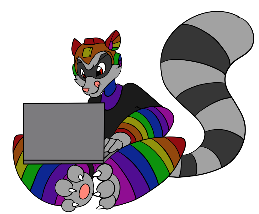 Ricky working away and decked out in a dark rainbow themed Mega Man suit. He's actually open for story commissions, himself, so if you'd like to get somethin' written, feel free to drop him a line.