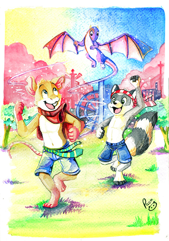 Characters: Zane, the mouse, and Sparky, the raccoon. Both from Pintocat.