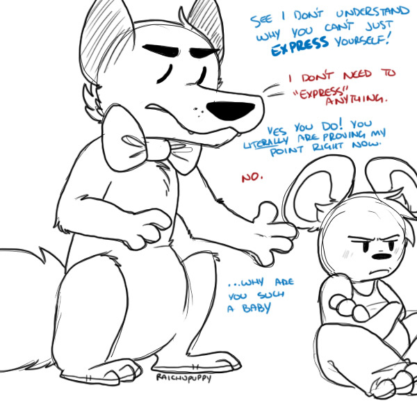 Like any healthy friendship/relationship, arguments happen. It's never anything serious, but it's unpleasant nonetheless and even guys as sweet and mild mannered as Eugene get frustrated, and then Pooky usually loses his patience and ends up saying something mean that he didn't actually mean.