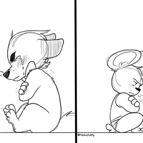 Soooooo Pooky ends up saying something mean after Eugene called him a baby, and it inevitably hurts Eugene's feelings, but since Eugene isn't a fighter or even a screamer or one to get outwardly angry, he just sits and the corner and cries angrily for a little while while Boo goes and pouts in the other corner.