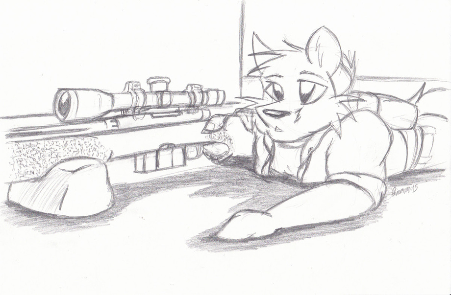Quick sketch of a fox with an unknown, generic rifle. (Seriously, it's not supposed to be anything real. Didn't have any references available when I was drawing it.)