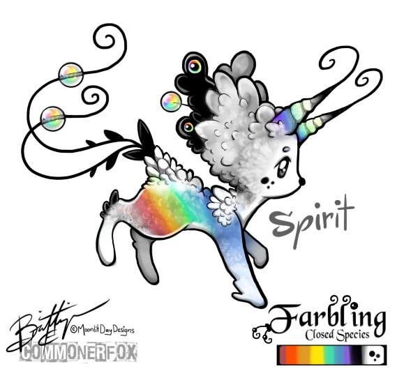 Definition: A small mythological bipedal creature. 7cm-14cm (2.7in-5.5in) tall. The Marble holds the creature's spirit and the tail acts as a "bridge" between the spirit and it's sonafication [image of creature] within a tangible/breathing/feeling form. The creature itself is 100% covered in "Furfeathers" a carbon shaft that sprouts extravagant patters and colors of fur. The hair follicle lays within the shaft close to the skin. Self aware, peaceful nature. Come into existence from the phenomenon of a person finding something they feel they had lost forever. The Farble takes on the personality characteristics of it's creator.