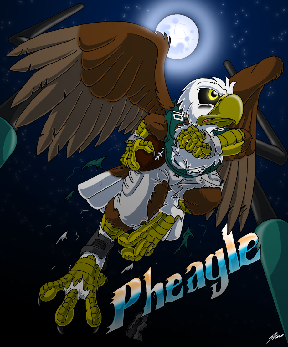 A piece depicting my character, Pheagle, transforming while scoring a touchdown.