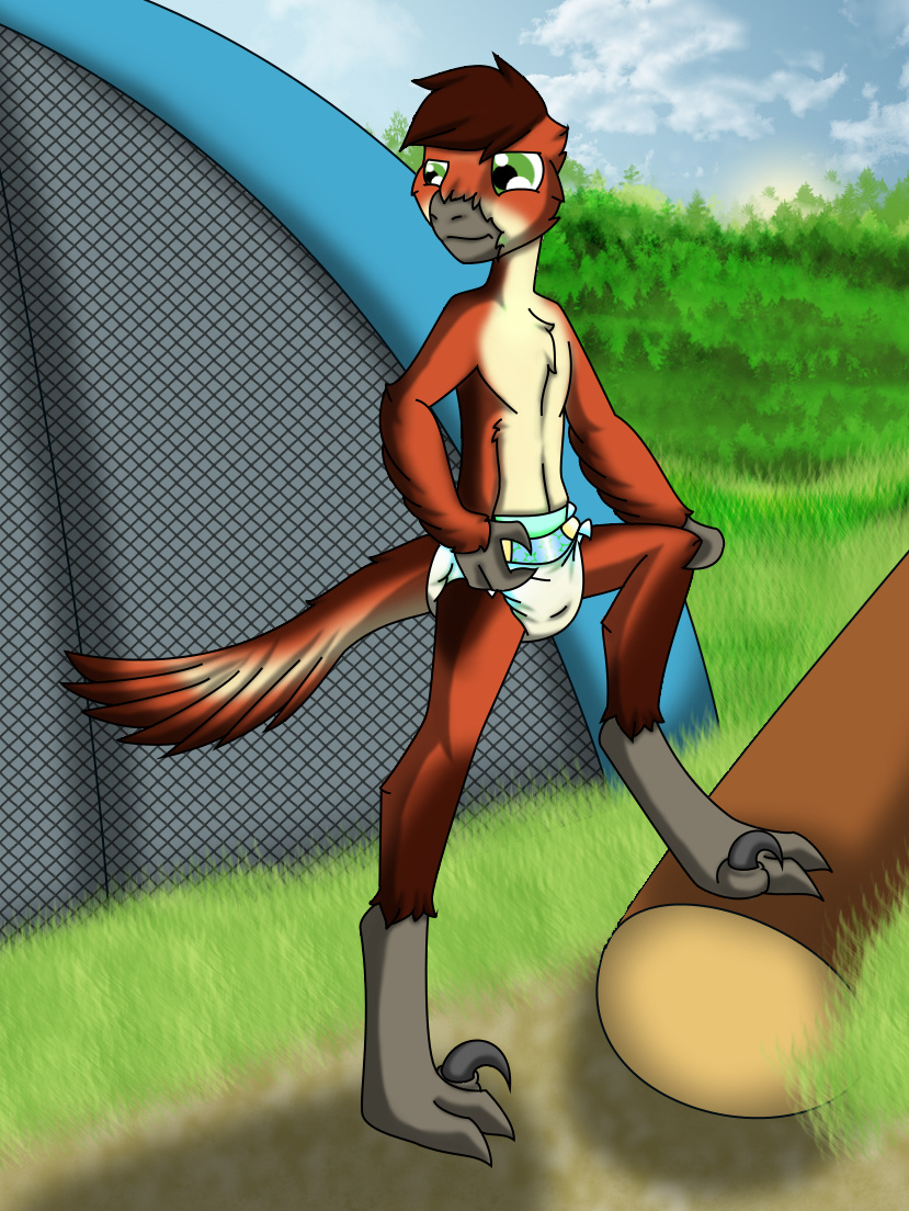 Spencer stretched and yawned as he rolled over inside the tent. He could make out sunlight just starting to peek it's way through the tent. It must have been early morning. Spencer smiled a bit as he usually didn't get up this early but with hiking and general exploring they'd been doing he was too beat to stay up very late last night. He sat up in his sleeping bag and stretched a bit more and gave a smile to the Sabertooth that laid in the sleeping bag next to his own as a pacifier bobbed rhythmically in the feline's muzzle. Next to him laid a grey folf arms wrapped round a plush Utah Raptor. Spencer got up quietly with just faint crinkles and a squish from his soggy diaper and got out of the tend. Standing outside he took in the view of the small clearing they were in and the sun slowly making it's way above the tree tops. He took a deep breath and fluffed his feathers momentarily as he stretched. Just as he did so he heard the Tent next to theirs unzip and out popped his uncle Savan.